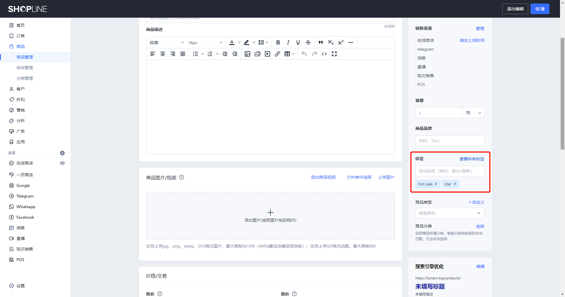 • 最多可添加50个商品标签。当已选标签达到50个时,下拉菜单中未选中的项目disabled。